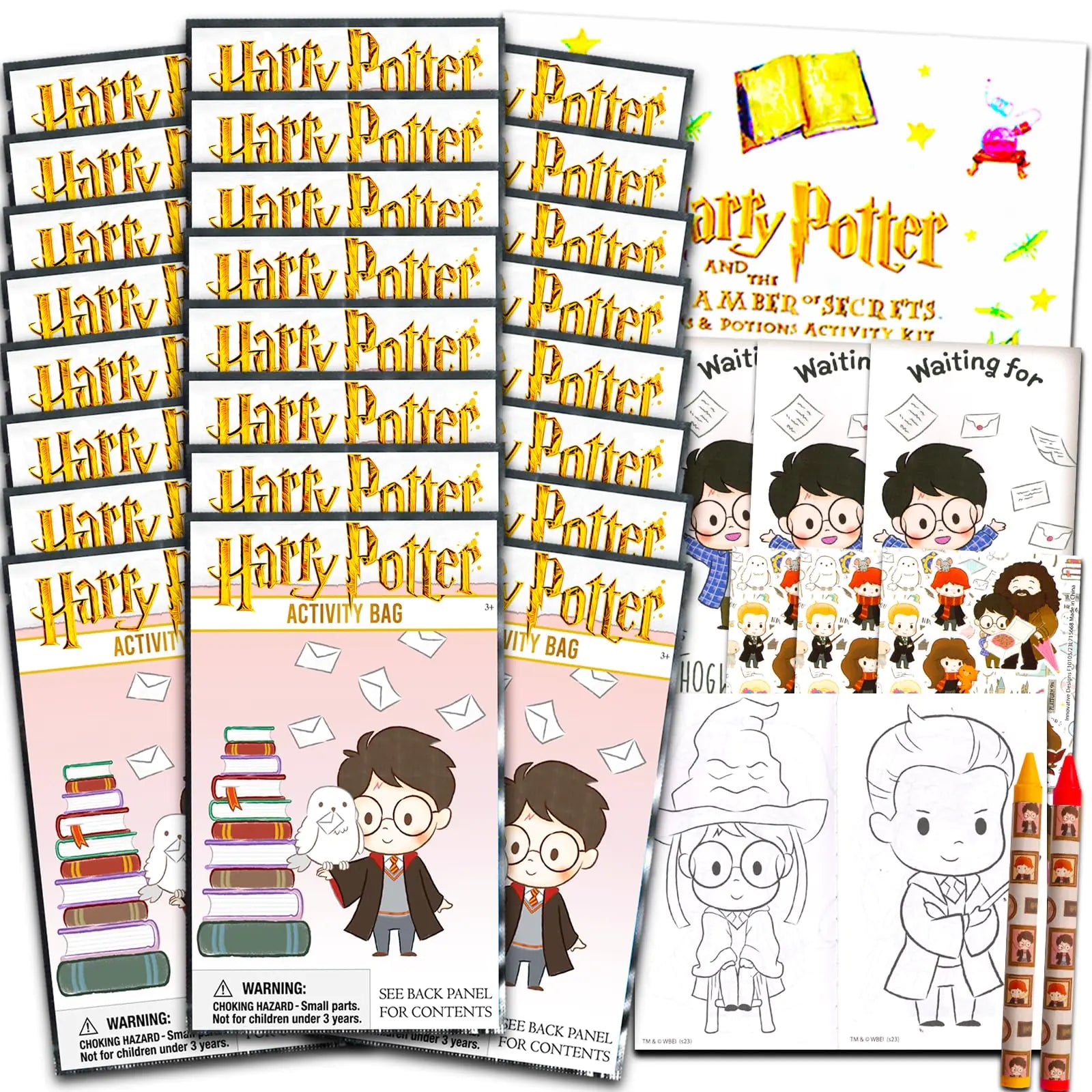 Harry Potter Birthday Party Favors Set - Bundle with 24 Harry Potter Play Packs | Mini Coloring Books Stickers and More for Goodie Bags (Harry Potter Party Supplies)